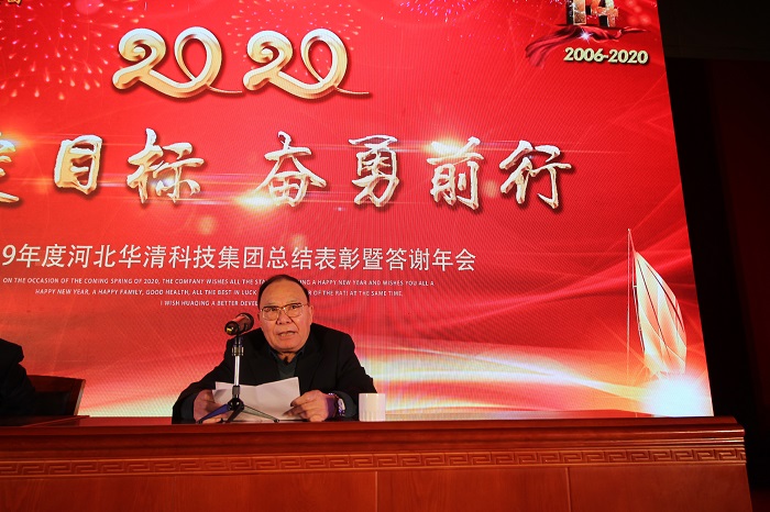 齐心建伟业,共筑华清梦。2020年1月22日,公司在亚太大酒店举办“2019年度总结表彰暨答谢年会”。原河北省副省长刘建生,河北省环境科学学会秘书长李云凯,河北科技大学杨光教授、王振州教授等20多名嘉宾及公司员工近400人参加。